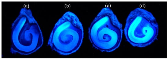 3.1. Fluorescence Microscopy of Coumarin 1, 120, and 151 in Tomato Seeds