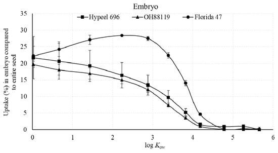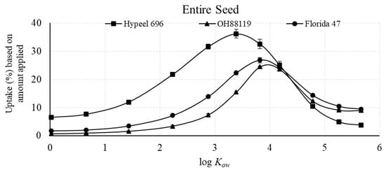 - Yang, D.; Donovan, S.; Black, B.C.; Cheng, L.; Taylor, A.G. Relationships between compound lipophilicity on seed coat permeability and embryo uptake by soybean and corn. Seed Sci. Res. 2018, 28, 229–235. [Google Scholar] [CrossRef]