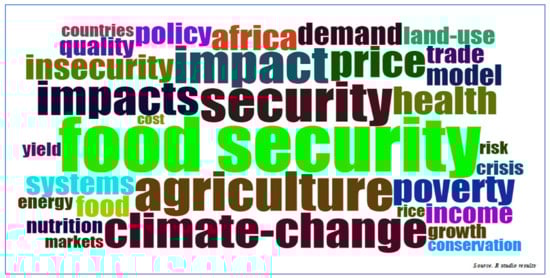 Further research is needed to investigate and measure the empirical impact of food price volatility on food security. It is noticeable that climate change, health, and income appeared as merging keywords. This gives the attention to associate the food security assessment with people’s health status, food nutritive values, and the capability of earned income to ensure stable nutritious food. With the spread of COVID-19, it is crucial to develop empirical studies examining the income, price changes, and climate change effects on nutritious food access and agricultural products and food availability (local production and import) during the crisis (e.g., the pandemic).The emerging direction consists of developing research that focuses on the dietary pattern and how the price could reduce the nutrient intake (e.g., zinc, iron, vitamins), which harms health.