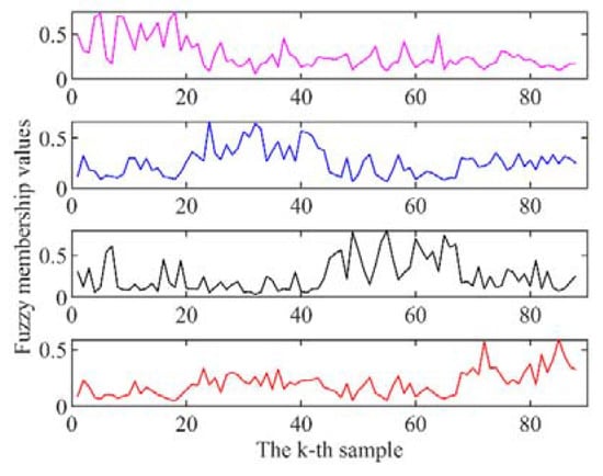 Before applying FFST, FLDA, and FUDT, the fuzzy membership values were calculated according to Equation (1) and plotted in Figure 4.