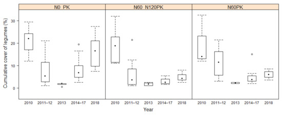 These results are however in line with the Černíkovice alluvial grassland experiment, where legumes achieved the highest cover in the control and PK treatments [33].