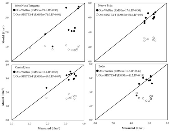 Hayashi, K.; Llorca, L.P.; Bugayong, I.D.; Agustiani, N.; Capistrano, A.O.V. Evaluating the Predictive Accuracy of the Weather-Rice-Nutrient Integrated Decision Support System (WeRise) to Improve Rainfed Rice Productivity in Southeast Asia. Agriculture 2021, 11, 346. https://doi.org/10.3390/agriculture11040346