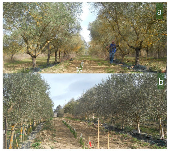 - Tous, J.; Romero, A.; Hermoso, J.F. New Trends in Olive Orchard Design for Continuous Mechanical Harvesting. Adv. Hortic. Sci. 2010, 43–52. [Google Scholar]