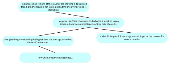 In this study, we first collect historical prices of the hog, maize, and bean from 2013 to 2020. All these historical prices are available from http://www.wind.com.cn/, accessed on 7 February 2021. Then, we extract discussions from an online professional pig community (https://bbs.zhue.com.cn/, accessed on 24 February 2021). Figure 4 shows the historical price data we collected, and Figure 5 is an example of such discussion. As we can see, the discussion contains people’s analysis and reflects their expectations. As a result, such a discussion already includes many other factors, in Figure 5, it contains the influence of supply and demand.