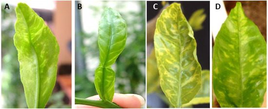 9. Ahlawat, Y.S.; Varma, A.; Lockhart, B.E.; Srivastava, M.; Chakraborty, N.K.; Varma, A. Association of a badnavirus with citrus mosaic disease in India. Plant Dis. 1996, 80, 590–592. [Google Scholar] [CrossRef]