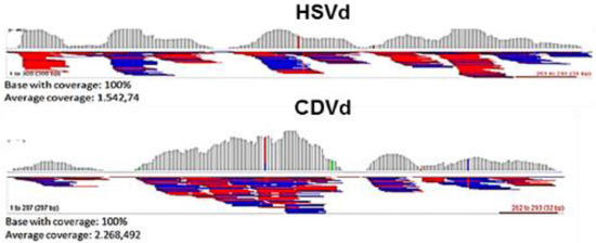Figure 9. Genome reconstructions of the hop stunt viroid (HSVd) and citrus dwarfing viroid (CDVd) by alignment of the siRNA reads of HU-PSTS library with reference sequences.