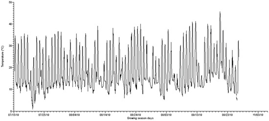 Average maximum and minimum temperatures recorded in the greenhouse during the 2019 growing season.