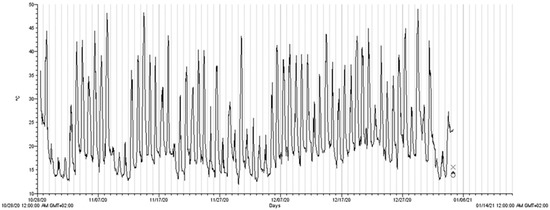 HOBO temperature and relative humidity (RH) sensors (Onset Computer Corporation, USA) were installed in the greenhouse for additional data collection (Figure 1 and Figure 2 and Table 2). The ETo for the local conditions (within), the greenhouse were calculated using the evapotranspiration (ETo) calculator [51]. Some variables required for calculating ETo were obtained from the automatic weather station (AWS) situated 100 m away from the greenhouse. The AWS uses the CS-500 Vaisala probe (Campbell Scientific, Logan, UT, USA) to measure temperature and relative humidity (converted into vapour pressure deficit), L1-200 pyranometer (Campbell Scientific, Logan, UT, USA) to measure solar radiation, and the Penman-Monteith equation to calculate reference evapotranspiration. The signal was transmitted wirelessly, and downloadable files are available from the South African Sugarcane Research Institute (SASRI) weather data portal.