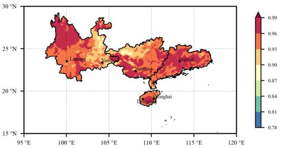 Pearson correlation of the AWD and the SWDI in the subsurface of the four southern provinces of China.