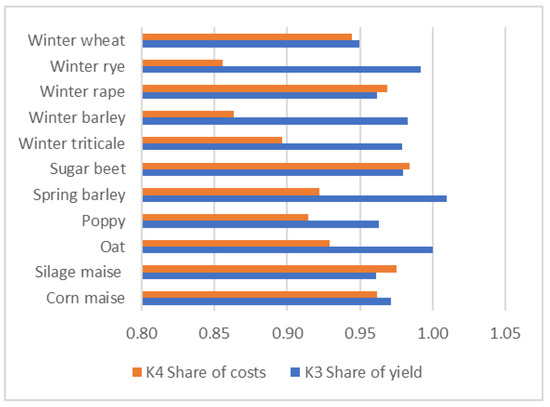 Share of yields K3 and costs K4 on main crops.
