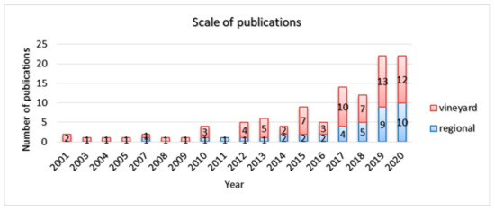 Number of publications in each scale (Vineyard and Regional).