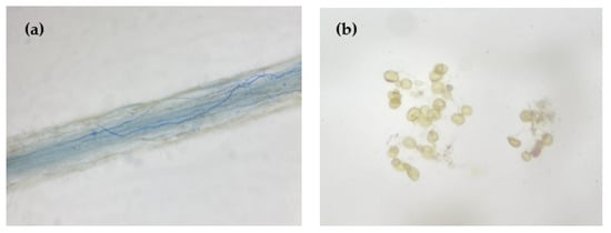 - Bethlenfalvay, G.J.; Ames, R.N. Comparison of two methods for quantifying extraradical mycelium of vesicular-arbuscular mycorrhizal fungi. Soil Sci. Soc. Am. J. 1987, 51, 834–837. [Google Scholar] [CrossRef]