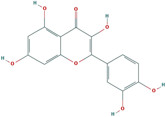 Molecular structure of quercetin (C15H10O7). (Source: https://pubchem.ncbi.nlm.nih.gov).