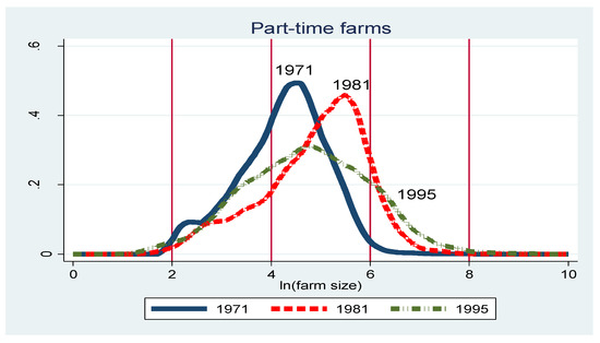 Changes in the farm size distribution by full-time/part-time status.