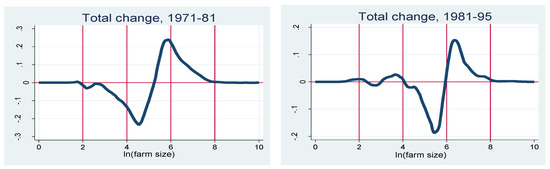 Decomposition of changes in farm size distribution, 1971 to 1981 and 1981 to 1995.