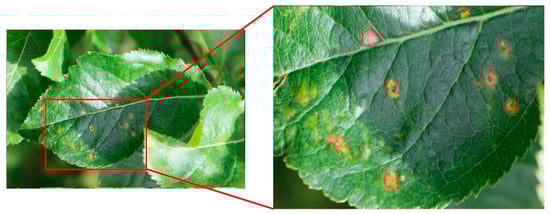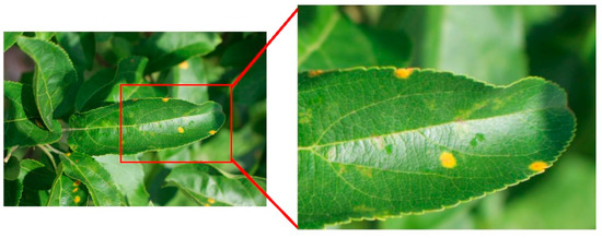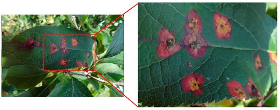 Figure 8 shows the leaf of an apple tree having cedar apple rust. We can see that the leaves have dense yellowish marks. Rust is often caused in plants via a unique fungus named ‘rust fungus’. In our dataset, about 34.2% of images are of cedar apple rust.