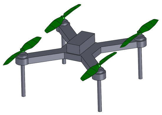 The three-dimensional model of the UAV was established based on the E360-S2 UAV of CNOOC. The main parameters are shown in Table 1. The rotor 8045 was obtained by an EXAscan handheld three-dimensional laser scanner. In order to facilitate grid division and simulation convergence, the UAV frame was simplified. The UAV model is shown in Figure 1.