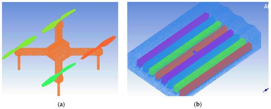 Figure 4. Mesh model; (a) UAV; (b) Greenhouse.
