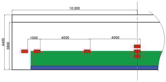 In order to simulate the actual operation situation of the UAV to study the influence of flight height, inter-row position, and crop conditions (whether there are any crops) in the greenhouse on the airflow field of a UAV in the greenhouse, an orthogonal experiment (Table 4) was designed to simulate the flow field. Flgiht position layout of UAV in greenhouse is shown in Figure 6.