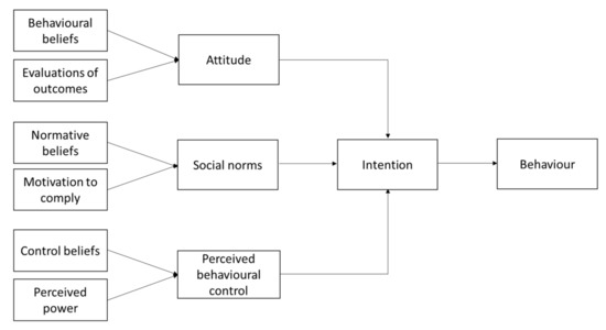 - Armitage, C.J.; Conner, M. Efficacy of the Theory of Planned Behaviour: A meta-analytic review. Br. J. Soc. Psychol. 2001, 40, 471–499. [Google Scholar] [CrossRef]
