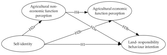 Self-Identity Theory emphasises that self-identity affects the cognitive style of individuals and can predict the direction of individual perception and cognitive process. Lee et al. [24] used it within the context of the Technology Acceptance Model (TAM), introducing an extension of a validated framework, and proved that self-identity influences the adoption behaviour of WebCT through perceived usefulness. From this perspective, how does farmers’ self-identity affect their cognition of agricultural function? Additionally, whether it determines their land responsibility behaviour? This has not been discussed in the literature before.