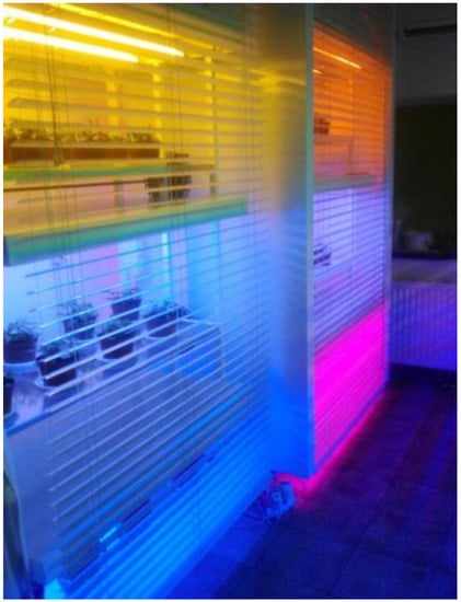 Kozai [] observed that although there are numerous advantages of the use of LED lamps in agriculture, they are not applied in conventional farming in developing countries. On the contrary, developed countries such as Japan started using LED lamps in urban agriculture in 2010. This idea was implemented due to the limited number of fields for cultivation and insufficient sun exposure. LED lamps were applied to solve these problems. This trend also increases the use of LEDs in urban agriculture because they meet all requirements for high effectiveness (only specific spectra are used), safety, and healthy production. LED characteristics surpass the characteristics of other unused wavelengths and have low irradiance. They generate low amounts of heat, which is environmentally friendly.