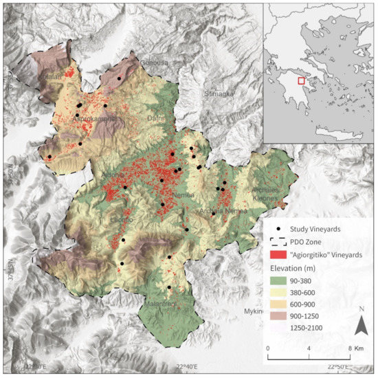 - Wineplus—WINE SCHOOL—Nemea. Available online: https://wineplus.gr/el/wine-school/Wine-Geography-%CE%9D%CE%B5%CE%BC%CE%AD%CE%B1.31/ (accessed on 9 March 2021).