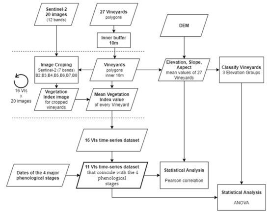 Chicago/Turabian StyleTassopoulos, Dimitrios, Dionissios Kalivas, Rigas Giovos, Nestor Lougkos, and Anastasia Priovolou. 2021. "Sentinel-2 Imagery Monitoring Vine Growth Related to Topography in a Protected Designation of Origin Region" Agriculture 11, no. 8: 785. https://doi.org/10.3390/agriculture11080785