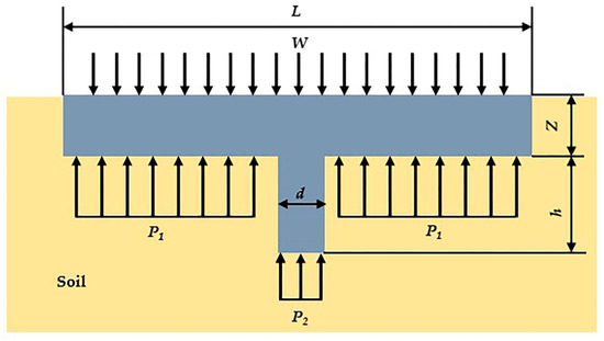 where W is vertical load, L is the length of grouser shoe, d is grouser thickness. is the contact stress of the top surface of the grouser, and is the stress at the bottom surface of the grouser shoe. According to the Beeker’s sinkage formula [28,29], the stress was expressed as follows: