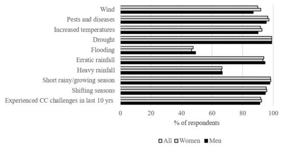 Farmers’ perceived climate-change related challenges experienced in the last 10 years.