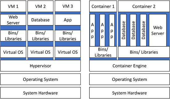 - Potdar, A.M.; D G, N.; Kengond, S.; Mulla, M.M. Performance Evaluation of Docker Container and Virtual Machine. Procedia Comput. Sci. 2020, 171, 1419–1428. [Google Scholar] [CrossRef]