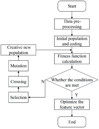 First determine whether the parameters of the feature vector satisfy the losing condition. If it satisfies then output the preferred feature vector and end the run; otherwise, perform the operations of genetic algorithm such as selection, crossover, mutation, and generation of new populations [27,28], and then repeat the above steps until the output condition is satisfied.