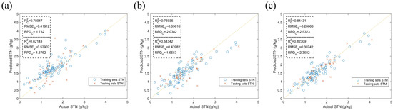 The sum of the various forms of nitrogen in the soil is called soil total nitrogen (STN). For arable soils, fertilization systems, crop rotations and utilization patterns all have a strong influence on the total soil nitrogen content. Moreover, it is an essential indicator for maintaining crop yield and plays a vital role in crop development and agroecosystems [1,2,3]. In precision agriculture, obtaining information on dynamic changes is important to improve nitrogen fertilizer utilization and cropping patterns [4,5]. Therefore, it is of significance to improve the accuracy of measuring soil total nitrogen content and to obtain information on soil total nitrogen more rapidly and accurately [6].