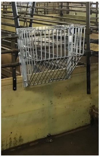 Every second pen in the finishing pig unit was equipped with a straw rack, mounted on the dividing wall between two adjacent pens (