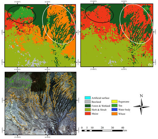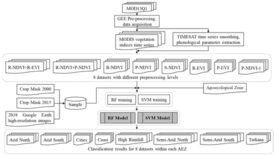 - Forkuor, G.; Conrad, C.; Thiel, M.; Landmann, T.; Barry, B. Evaluating the sequential masking classification approach for improving crop discrimination in the Sudanian Savanna of West Africa. Comput. Electron. Agric. 2015, 118, 380–389. [Google Scholar] [CrossRef]
