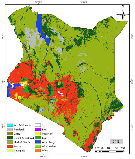 - Luciani, R.; Laneve, G.; Jahjah, M. Developing a classification method for periodically updating agricultural maps in Kenya. In 2016 IEEE International Geoscience and Remote Sensing Symposium (IGARSS); IEEE: Beijing, China, 2016; pp. 3543–3546. [Google Scholar] [CrossRef]