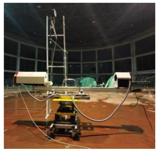 The test system of the spraying pesticide performance test is shown in Figure 3. A WQ HELOS KR VARIO laser particle size meter (Sympatec Instruments, Pulverhaus: Clausthal-Zellerfeld, Germany) was used to measure the particle size of the sprayed droplets, and its range of measurement was 0.1~3500 μm. The test area was designed to be 1200 mm. The test sprinkler was installed at 1.2 m above the ground.
