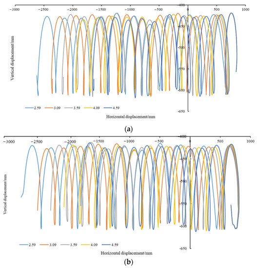 Trajectory of cavity seeder’s movement under sandy soil. (a) Right cavity seeder. (b) Left cavity seeder.
