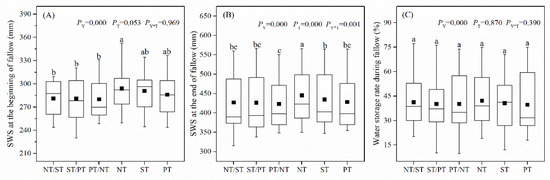 - Wang, S.L.; Wang, H.; Zhang, Y.H.; Wang, R.; Zhang, Y.J.; Xu, Z.G.; Jia, G.C.; Wang, X.L.; Li, J. The influence of rotational tillage on soil water storage, water use efficiency and maize yield in semi-arid areas under varied rainfall conditions. Agric. Water Manag. 2018, 203, 376–384. [Google Scholar] [CrossRef]