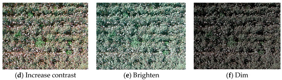 In order to further increase the diversity of samples, properly control the number of samples, and reduce the training time of the algorithm, 500 images were selected for data enhancement through five methods: rotation, brightening, increasing contrast, coloring and darkening, as shown in Figure 2 and Figure 3. All unclear pictures after enhancement were removed with 2432 pictures retained.