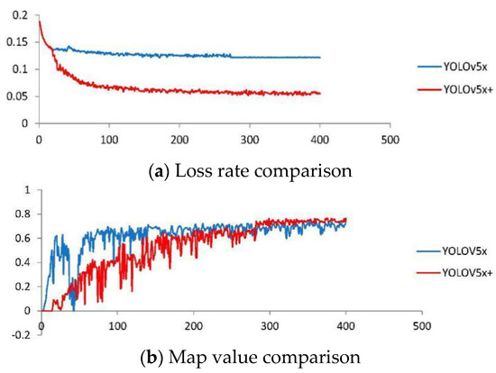 In order to verify the effect of the improved model, the indexes of the improved model were compared with the original YOLOv5x model, and the results are shown in Figure 11.