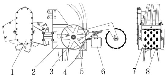 - Chen, H.; Xu, Y.; Shi, N. Design and experiment on three-way adjustable V-type soil-covering and soil-compacting device. J. Northeast. Agric. Univ. 2018, 49, 65–73. [Google Scholar]
