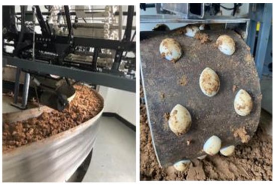- Han, L.; Yuan, W.; Yu, J.; Jin, J.; Xie, D.; Xi, X.; Zhang, Y.; Zhang, R. Simulation and experiment of spiral soil separation mechanism of compound planter based on discrete element method (DEM). Agriculture 2022, 12, 511. [Google Scholar] [CrossRef]