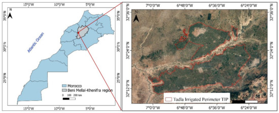 - El Harti, A.; Lhissou, R.; Chokmani, K.; Ouzemou, J.E.; Hassouna, M.; Bachaoui, E.M.; El Ghmari, A. Spatiotemporal monitoring of soil salinization in irrigated Tadla Plain (Morocco) using satellite spectral indices. Int. J. Appl. Earth Obs. Geoinf. 2016, 50, 64–73. [Google Scholar] [CrossRef]