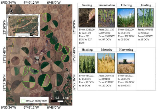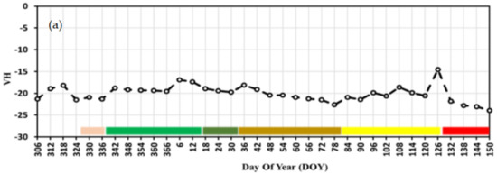 | Ali Nasrallah et al. [2] | 2019 | Monitoring and mapping wheat phenology | Wheat | Sentinel-1 time series | Smoothing and fitting the temporal series with Gaussian functions | RMSE = 2.9–5.5 days |