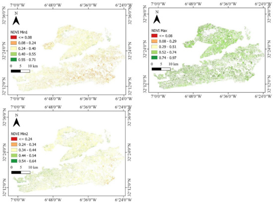 - Ouzemou, J.E.; El Harti, A.; Lhissou, R.; El Moujahid, A.; Bouch, N.; El Ouazzani, R.; Bachaoui, E.M.; El Ghmari, A. Crop type mapping from pansharpened Landsat 8 NDVI data: A case of a highly fragmented and intensive agricultural system. Remote Sens. Appl. Soc. Environ. 2018, 11, 94–103. [Google Scholar] [CrossRef]