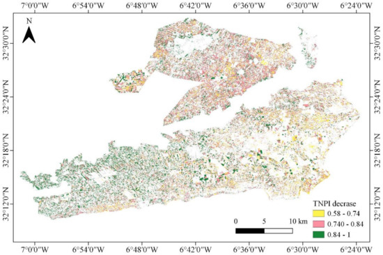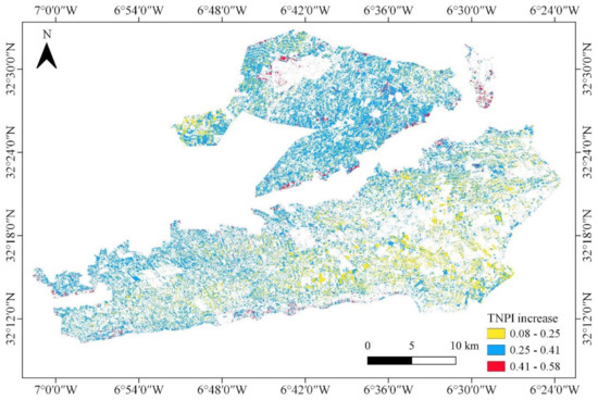 4.8. Computation of TNPI and Temporal Change Analysis