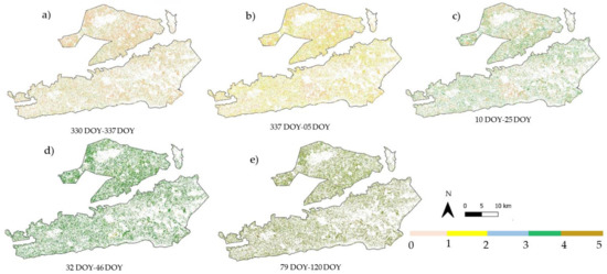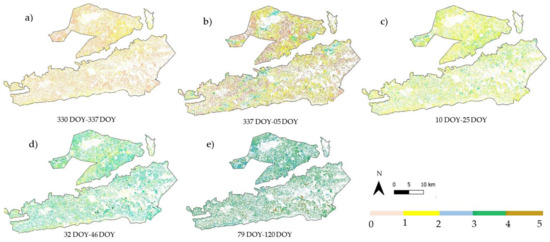 5.6. Computation of Temporal Normalized Phenology Index (TNPI)