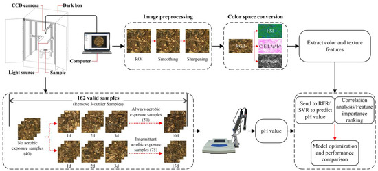 Ren, X.; Tian, H.; Zhao, K.; Li, D.; Xiao, Z.; Yu, Y.; Liu, F. Research on pH Value Detection Method during Maize Silage Secondary Fermentation Based on Computer Vision. Agriculture 2022, 12, 1623. https://doi.org/10.3390/agriculture12101623