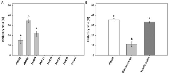 2.7. Inhibitory Effect of Fungicides on the Growth of Bacillus amyloliquefaciens PMB04